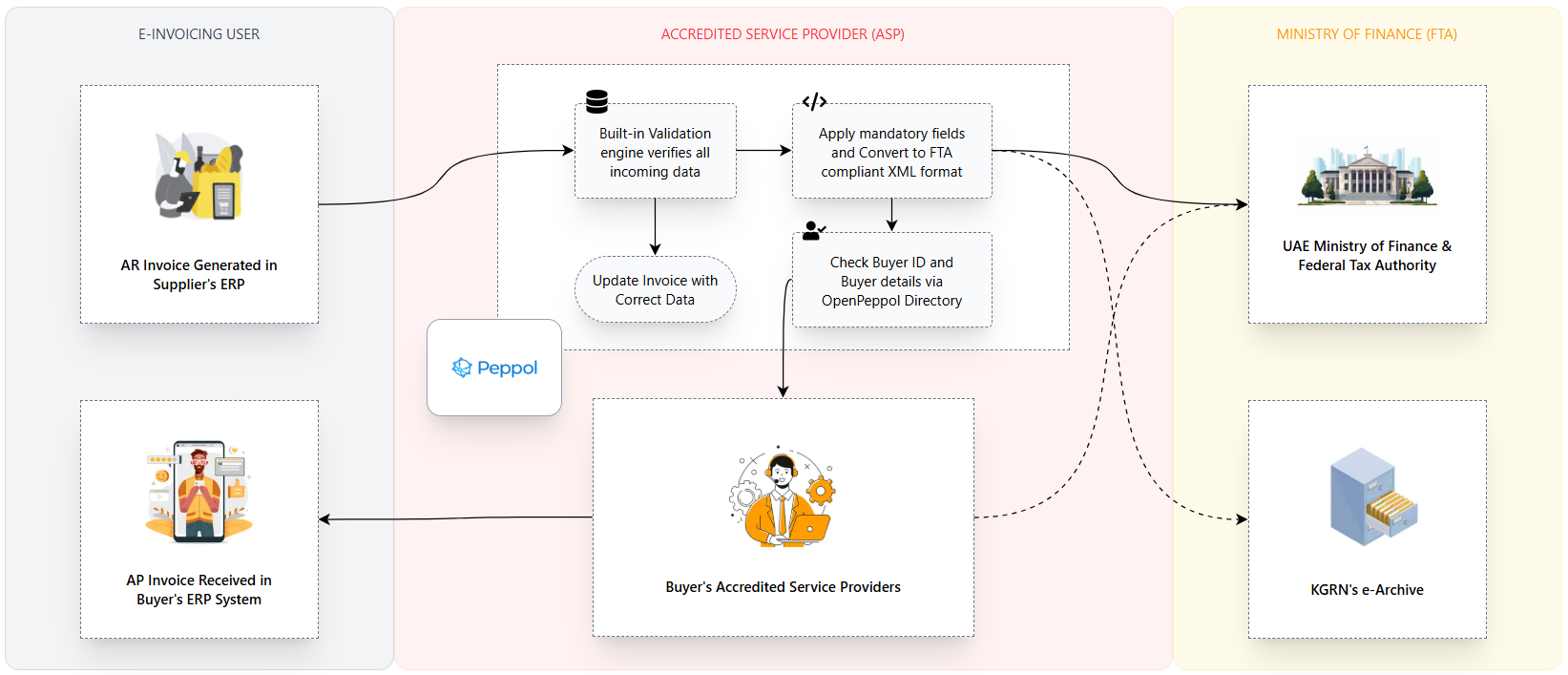 KGRN helps UAE businesses get ready for the 2026 FTA e-Invoicing mandate with Peppol-aligned, VAT-compliant, fully managed solutions - so you stay focused on the business, not on the regulation.